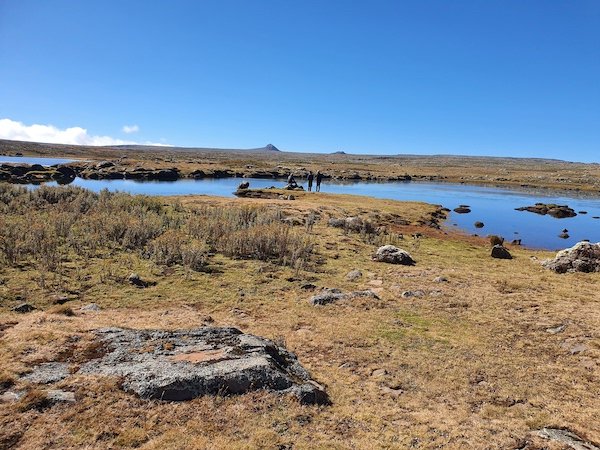 Bale Mountains National Park mainly sits on a high altitude plateau, which includes the second highest peak in Ethiopia, Tulu Dimtu at 4,377m (14,360 ft). The park is over 2,000 km2 (over 800 sq mi), and is home to a variety of endemic species, including the Abyssinian Wolf, or the Ethiopian Wolf, a small light-red wolf with white markings that resembles a large fox. As well as the many other animals who share their home, we hoped to be lucky enough to see one.