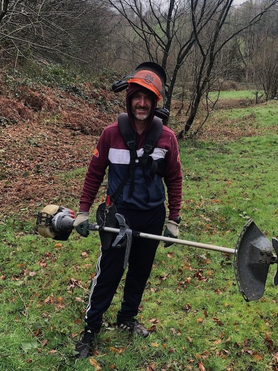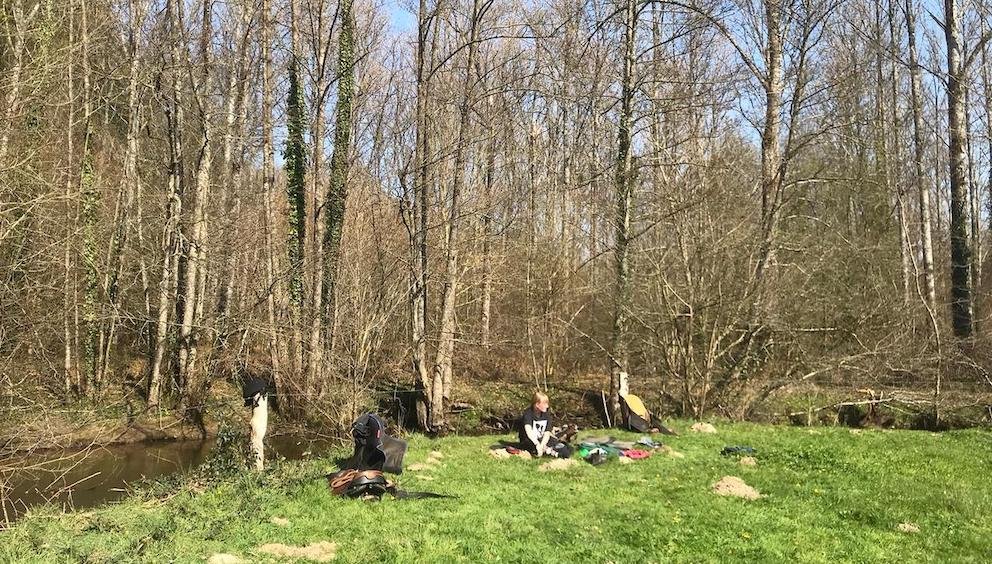 – Packing up the van in sunny Freneuse, and saying goodbye to Benoit for the moment. –